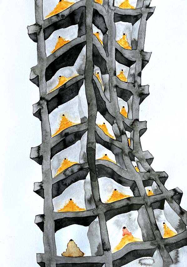Fascinated by their peculiar duality – at once human-made yet carrying the logic of the landscape – I chose them as the focus of a new cycle of drawings. The formations align closely with my ongoing project “Graphic Geographies” a visual idiom in which geographical shapes are distilled into lines of clarity and rhythm.